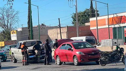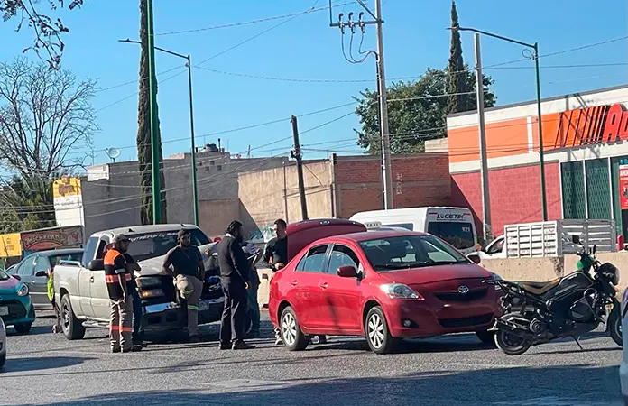 En los carriles centrales de la carretera a Rioverde, una camioneta le pegó por alcance a un automóvil a la altura de la colonia 21 de Marzo, no hubo personas lesionadas aunque los daños materiales fueron de consideración.