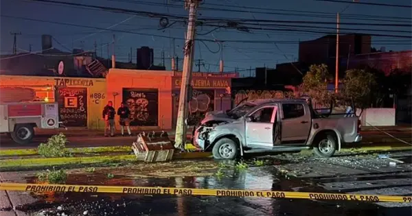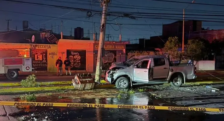 El chofer de una camioneta Hilux se impactó contra un poste de energía eléctrica, lo que provocó la caída de un transformador y dejó sin suministro eléctrico a varias colonias del sector oriente de la ciudad.