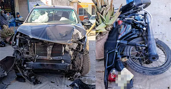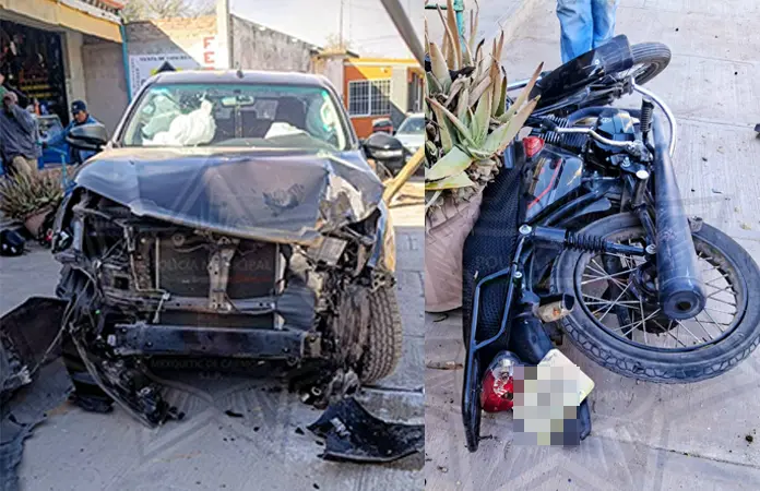 Con lesiones considerables resultó un motociclista al ser arrollado por una camioneta en la comunidad de Los Moreno, perteneciente a Mexquitic de Carmona, la cual previamente había derribado un poste de teléfonos.