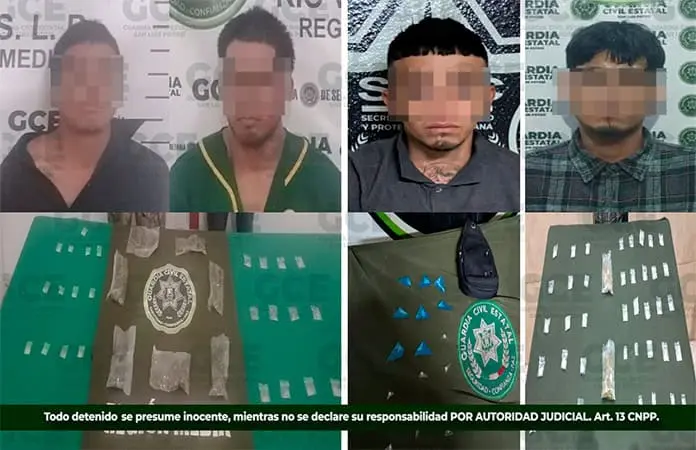 Cuatro presuntos vendedores de droga fueron capturados por elementos de la Guardia Civil Estatal en distintos operativos realizados en la entidad, asegurándose decenas de dosis, en especial cristal y marihuana.