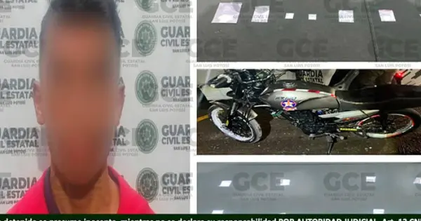 Por otro lado, en los despliegues efectuados en la zona oriente de la ciudad, en el Periférico Oriente y la colonia Prados, en el Municipio de Villa de Pozos, un menor de 17 años de edad quedó detenido, luego de que presuntamente poseía siete dosis de la droga sintética conocida como “cristal”.