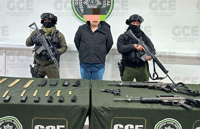 Al presunto, de nombre José N. de 42 años de edad se le observaron armas que no estaban registradas en la credencial que presentó como identificación, por lo que se le asegura lo siguiente: