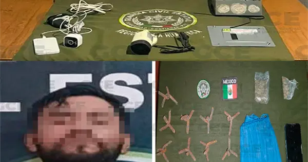 La Secretaría de Seguridad y Protección Ciudadana informó que le marcaron el alto para efectuarle una inspección de seguridad, y le encontraron artefactos metálicos conocidos como "ponchallantas", utilizados para entorpecer el desplazamiento de las unidades policiales, dos bolsas con hierba verde y seca con las características propias de la marihuana, además de un teléfono celular.