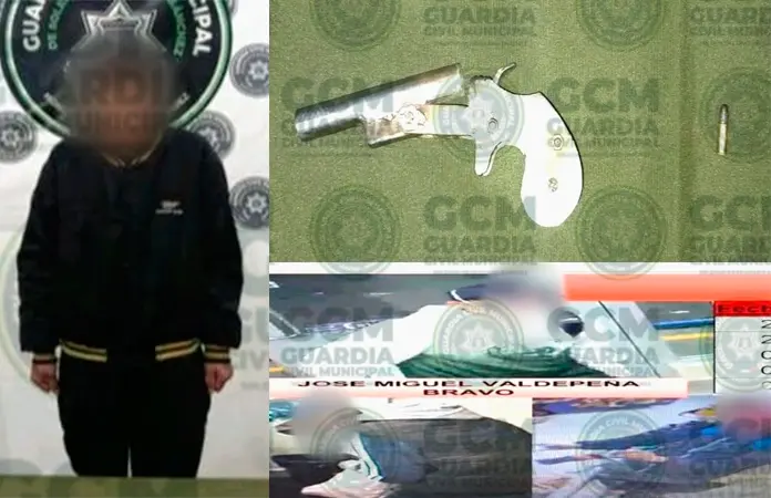 Oficiales municipales entrevistaron al sujeto, quien se identificó como José „N" de 19 años, quien mostró una actitud agresiva, por lo que se procedió conforme al debido protocolo de actuación, encontrándole un arma de fuego de hechura artesanal abastecida con un cartucho calibre .22.