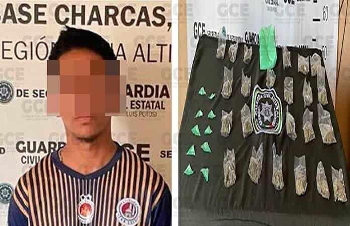 CHARCAS.- Mediante operativo desarrollado por los oficiales de la Guardia Civil Estatal para inhibir actividades delincuenciales, un presunto narcomenudista y supuesto miembro de un grupo criminal, fue detenido por las autoridades.