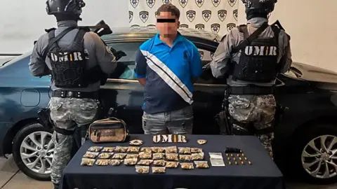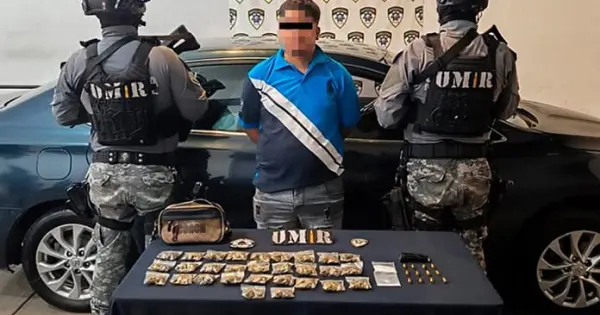 Los policías adscritos a la Unidad Mixta de Intervención y Reacción (UMIR), efectuaban patrullajes de seguridad sobre la calle de Luis Medellín, donde detectaron estacionado un vehículo marca Nissan Sentra, cuyo conductor portaba en el asiento del copiloto varias bolsas con una hierba seca verde similar a la marihuana y sostenía en su mano una jeringa que contenía una sustancia cristalina.