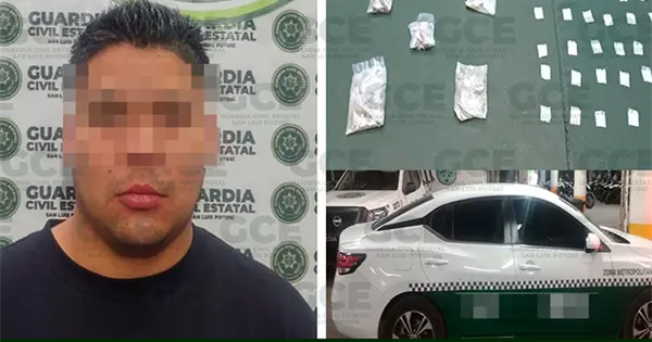 Como parte de las acciones permanentes de prevención, vigilancia y combate a los delitos contra la salud, la Guardia Civil del Estado llevó a cabo la detención de un hombre que utilizaba un taxi para presuntamente distribuir droga en la capital potosina.