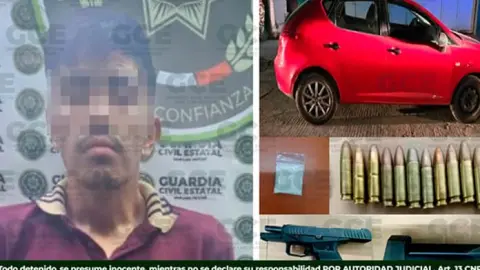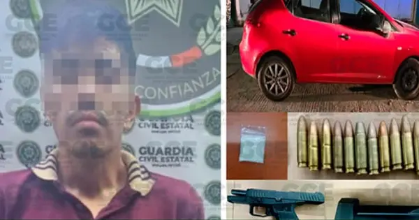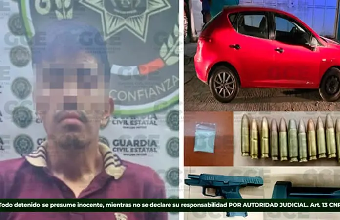 Un dispositivo implementado por nuestros agentes de la Guardia Civil Estatal en la colonia Villa Alborada, en el municipio de Soledad de Graciano Sánchez, derivó en la detención de Gerardo “N” de 31 años, quien fue asegurado con un arma de fuego calibre .9 milímetros, 13 cartuchos del mismo calibre, un cargador, una dosis de “cristal” y un vehículo Seat Ibiza con placas del Estado de México.