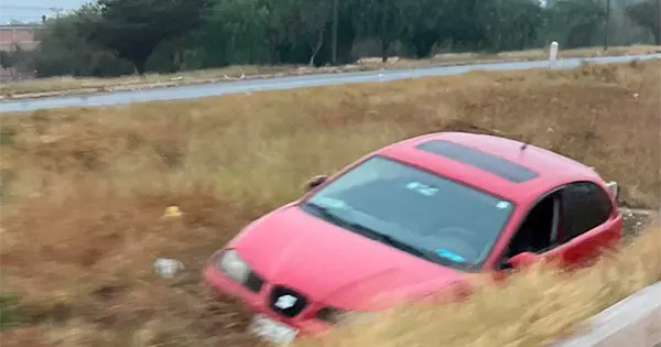 Según los hechos, fue alrededor de las seis de la mañana cuando el automóvil, un Seat de color rojo, se desplazaba por los carriles centrales de la mencionada carretera en dirección del Periférico Oriente hacia Villa de Pozos.
