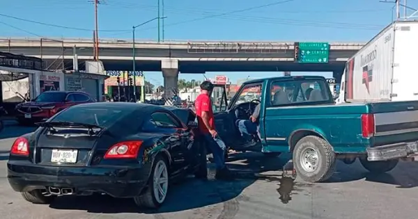 Una camioneta y un automóvil participaron en un choque en la avenida José de Gálvez, en la colonia Foresta, solamente se registraron daños materiales sin que hubiera lesionados.