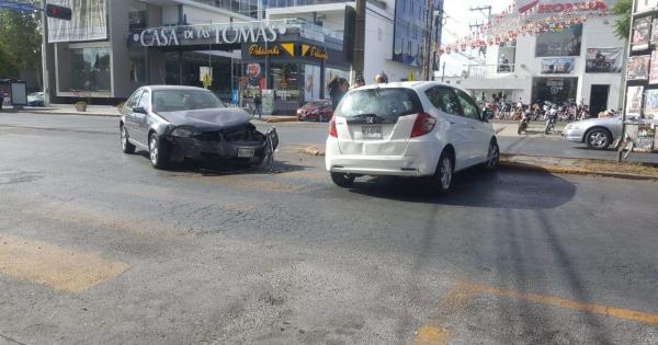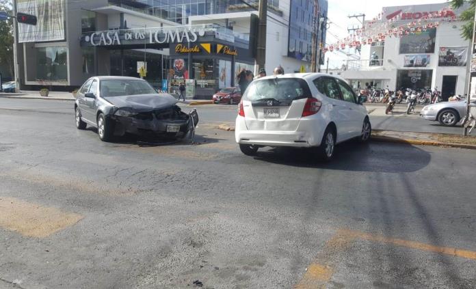 El accidente se registró en el cruce con la calle Valentín Gama, donde se impactaron los conductores de un Jetta gris y un Honda Fit color blanco.