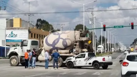 Chocan camioneta con revolvedora en ZI; sólo daños