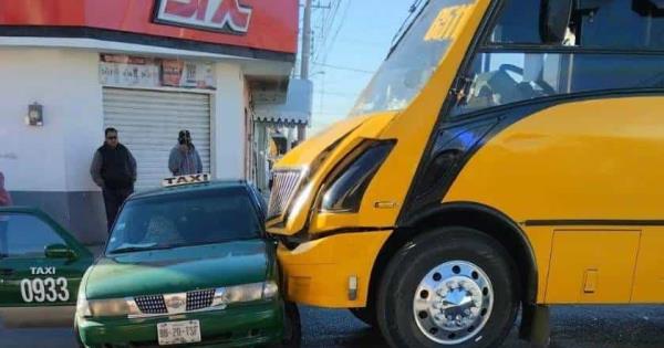 El choque se registró esta mañana, cuando el conductor de un taxi circulaba sobre la calle de Negrete y al incorporarse a la calle de Escontría fue impactado de su lado izquierdo por el conductor del camión urbano.