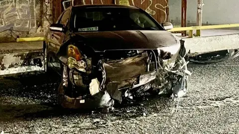 Luego del impacto, el Altima terminó chocando contra la guarnición quedando sobre el carril derecho, ambos vehículos acabaron destrozados por completo de la parte frontal.