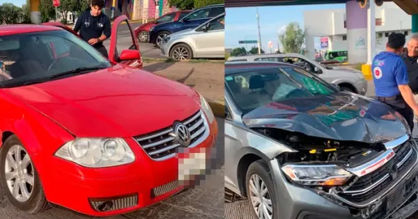 Al llegar al entronque con la avenida Chapultepec, chocó de frente contra el costado derecho de otro automóvil Jetta de color rojo, que por ahí circulaba procedente de la avenida Manuel J. Clouthier y que cruzaba hacia Chapultepec.