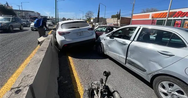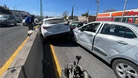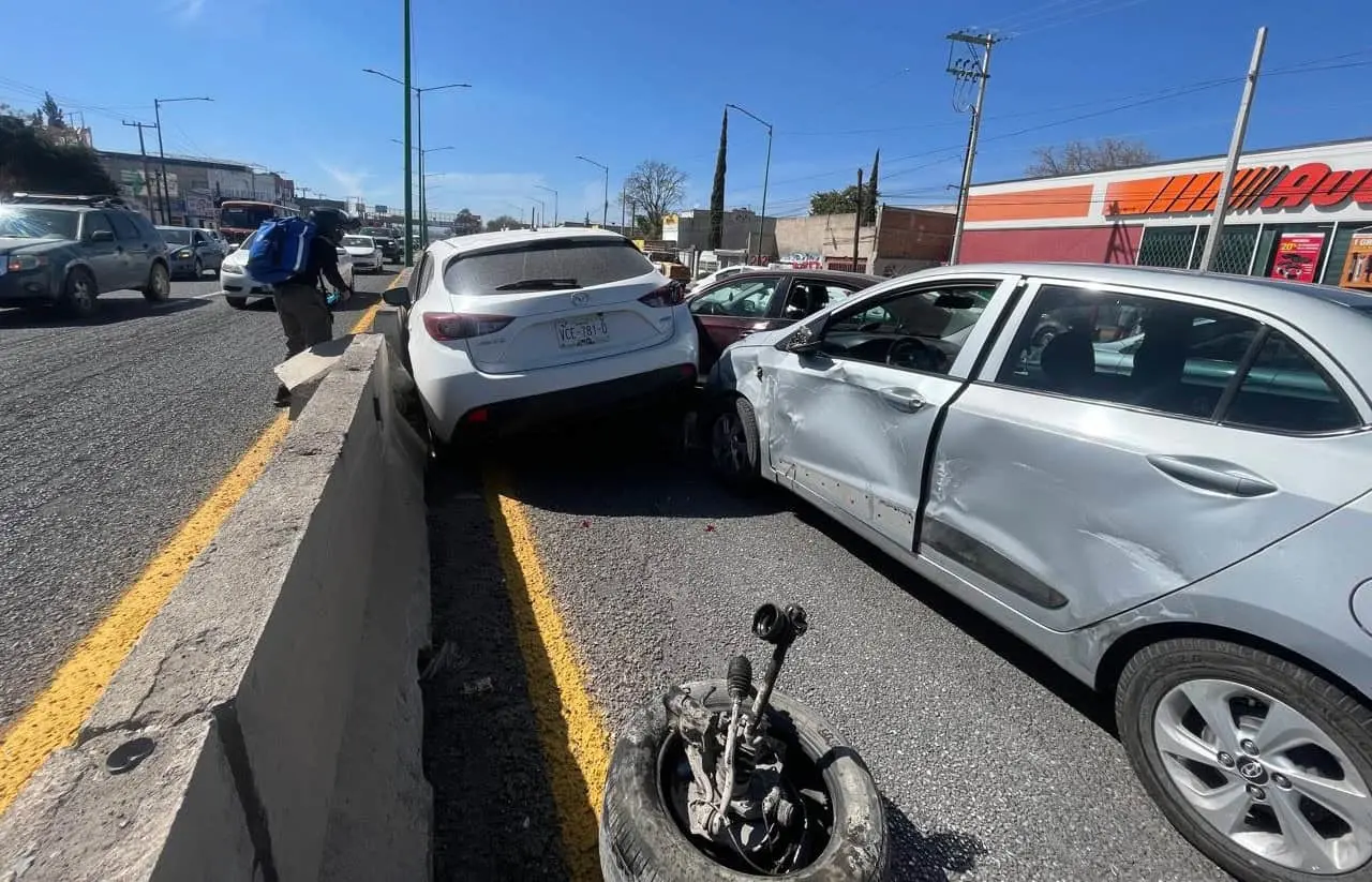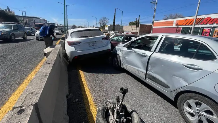 Cuatro conductores de vehículos se vieron involucrados en un accidente en carretera a Rioverde, a la altura de la colonia 'Benito Juárez' de Soledad.