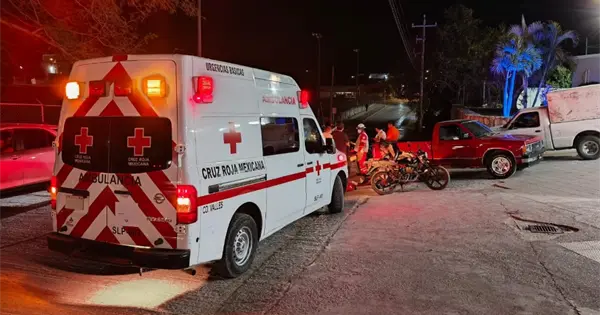 CIUDAD VALLES.– Dos jóvenes resultaron lesionados la noche de este miércoles luego de que la motocicleta en la que viajaban se impactara contra una camioneta que les cerró el paso en la colonia Porvenir.