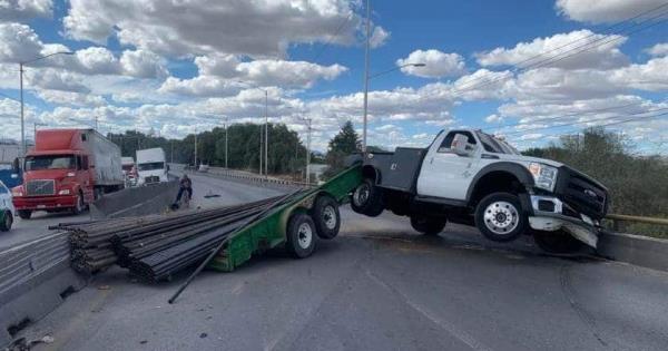 En la zona, el conductor de una camioneta Ford con remolque acoplado perdió el control debido a su carga de acero y “colea” golpeando el muro de contención.