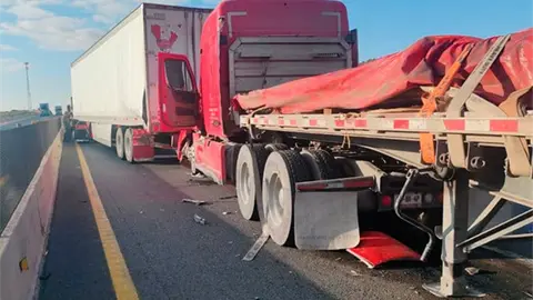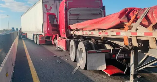 La colisión se dio entre dos unidades tipo tráiler, una con caja seca y otra con plataforma, donde esta última impactó con la defensa trasera de la otra, según reportes de la Guardia Nacional División Caminos.