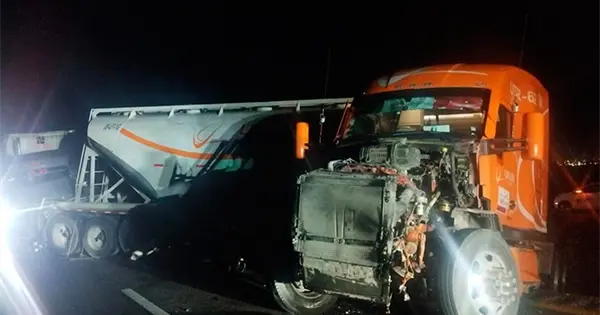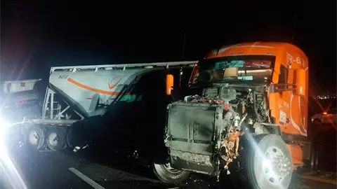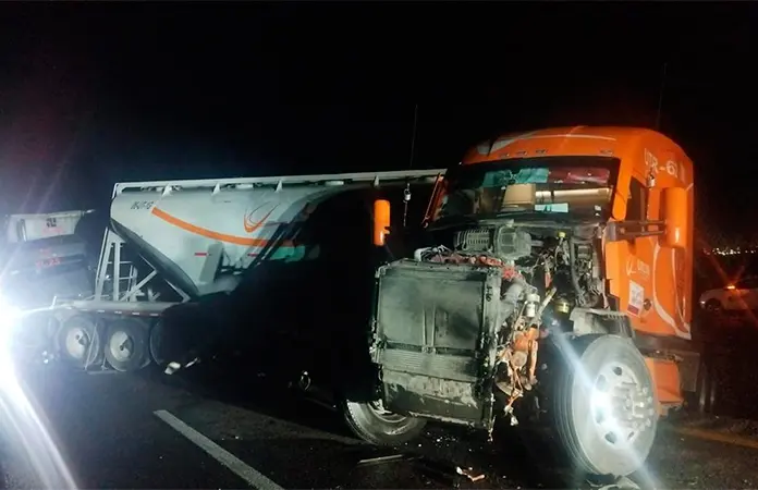 Ante el fuerte impacto el tractocamión de la tolva fue proyectado hacia adelante y también se impactó de frente contra la contención, quedando totalmente descuadrado obstruyendo los carriles del Libramiento.