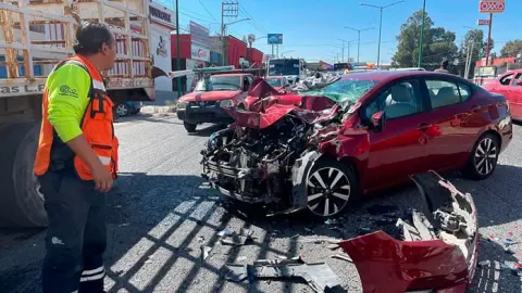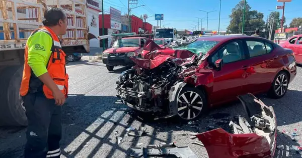El accidente se registró antes de las dos de la tarde de este martes, un automóvil Nissan Versa de color guida, circulaba por la carretera a Rioverde en dirección del distribuidor Juárez hacia la carretera a Rioverde.