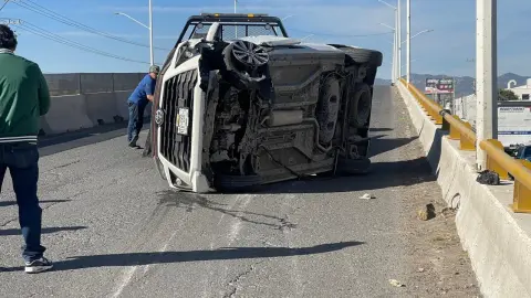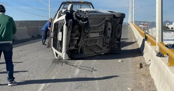 El reporte se registró alrededor de las 09:00 de la mañana, cuando el conductor de una camioneta Nissan que circulaba con dirección a la carretera Matehuala perdió el control al descender del puente de la avenida del Sauce, impactando contra el muro de contención del lado izquierdo.