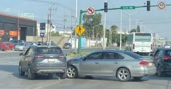 El reporte fue a las 09:30 de la mañana, cuando el guiador de un vehículo Volkswagen circulaba sobre el Eje 108, pero al llegar a la avenida Industrias chocó con una camioneta Chevrolet.