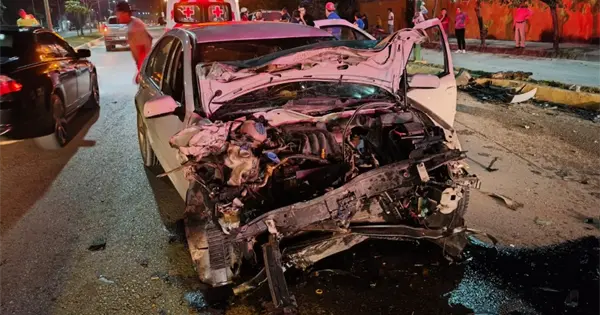 El accidente ocurrió la noche del domingo, cuando el conductor de un Volkswagen Jetta blanco, que circulaba por el bulevar Lázaro Cárdenas rumbo a la carretera Valles–Rioverde, presuntamente intentó girar a la izquierda para incorporarse a la avenida Vicente C. Salazar. En la maniobra, golpeó el camellón central y terminó impactando la parte frontal derecha de una camioneta Ford Escape que salía de esa misma avenida para cruzar el bulevar.