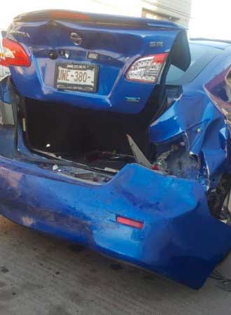 El conductor de un Nissan Sentra de color azul, obedeció el señalamiento, pero la conductora de una camioneta Jeep Liberty, que se desplazaba atrás del Nissan, no alcanzó a detenerse e impactó contra la parte posterior del automóvil, proyectándolo hacia el frente y embistiendo a quien daba vialidad.