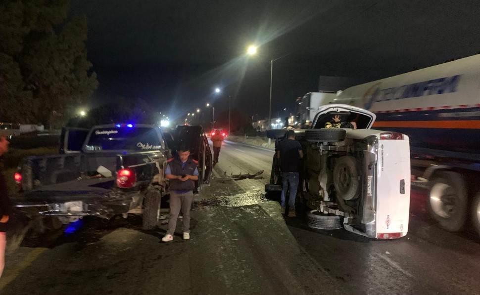 Un aparatoso choque múltiple ocurrió la tarde de este lunes en la carretera 57 con dirección a La Pila, a la altura del eje 128 y la gasolinera Los Arcos, en el municipio de Villa de Pozos. En el percance estuvieron involucrados cinco vehículos, dejando únicamente daños materiales.