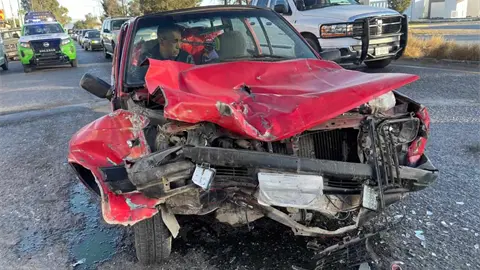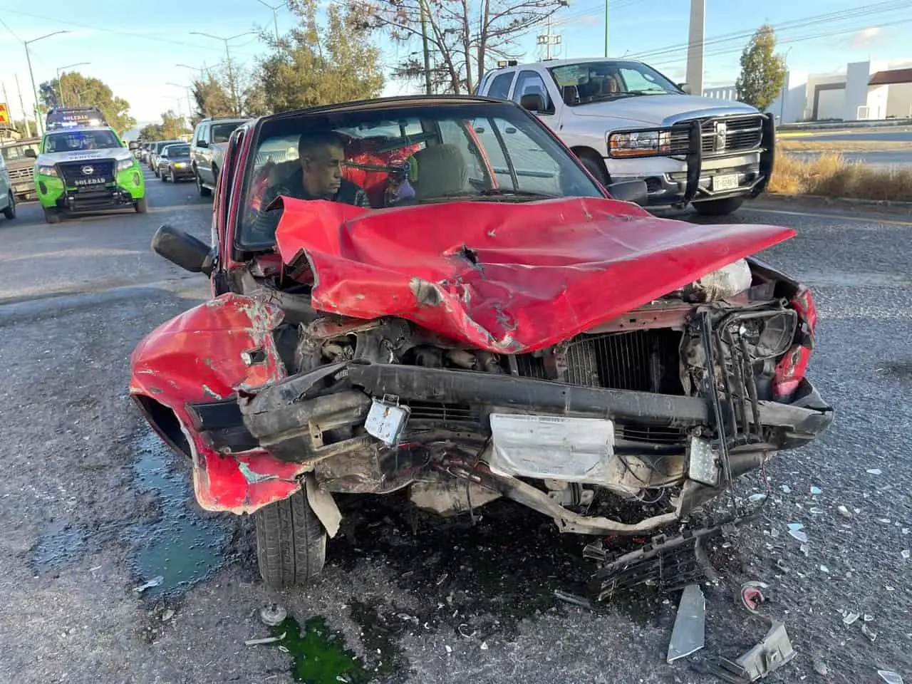 En la carretera a Rioverde, un choque entre un automóvil y un camión materialista solo provocó daños materiales, sin heridos graves.