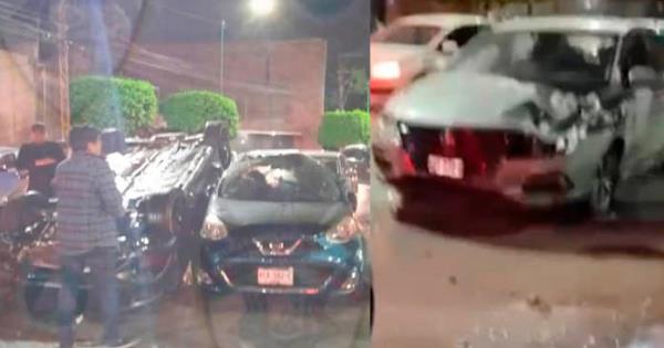 En el percance vial participaron cuatro vehículos, y se suscitó alrededor de las 23:00 horas del pasado martes, cuando el vehículo volcado circulaba a alta velocidad sobre la Av. Himno Nacional con dirección al poniente, y al llegar a la intersección con la calle de Tatanacho, no respetó la luz roja del semáforo, se impacta contra la contención, pierde el control continúa su errática trayectoria impacta contra otros dos vehículos que estaba parados por el semáforo sobre Tatanacho y termina volcado dañando a un tercer automóvil.