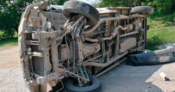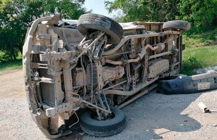 A causa de la colisión el conductor de la camioneta también perdió el control del volante y se salió del camino hacia la derecha, por eso su unidad se volcó.