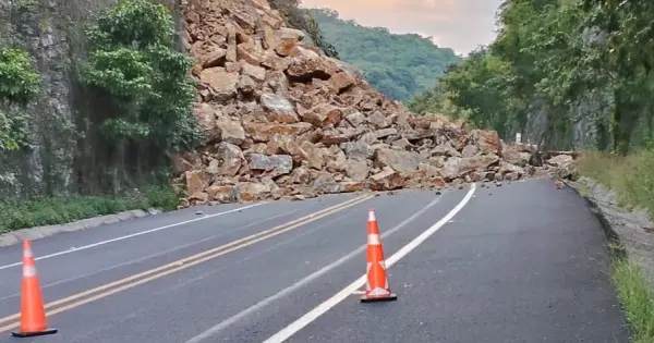 Cierran autopista Valles-Rayón por derrumbe de cerro