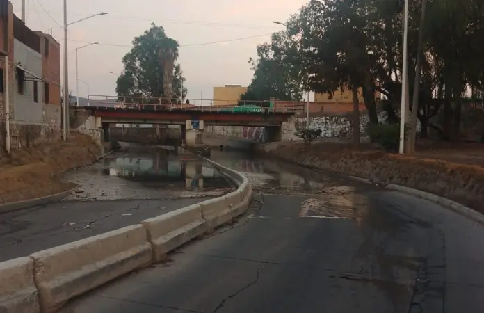La intensa lluvia registrada la tarde de este domingo provocó acumulación de agua en diversas vialidades de la capital potosina, lo que derivó en el cierre vial de la avenida Río Españita.