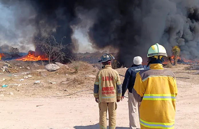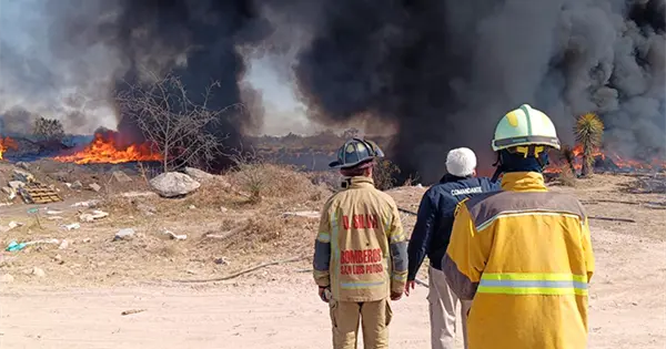 Personal de Protección Civil Estatal, Cuerpo de Bomberos y Protección Civil de Villa de Pozos llegaron a para iniciar el combate al fuego, para entonces las llamas y el humo alcanzaban gran altura y las empresas cercanas estaban en alerta por posibles evacuaciones, lo que por fortuna finalmente no fue necesario.
