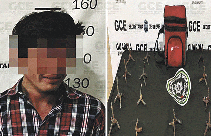 CHARCAS.- Como resultado de los trabajos preventivos en la zona Altiplano, elementos de la Guardia Civil Estatal detuvieron a un individuo, luego de sorprenderlo en probable posesión de objetos denominados como “poncha llantas”.