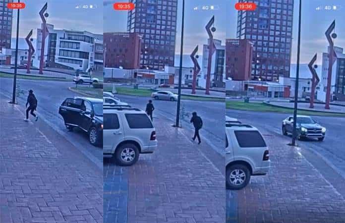 Casi enseguida llegó otra camioneta y se detuvo frente a la plaza, de la misma descendieron dos sujetos portando pistolas y rápidamente se dirigieron a donde estaba el acomodador, quien ya había estacionado debidamente la unidad Mercedez Benz color oscuro y modelo reciente.