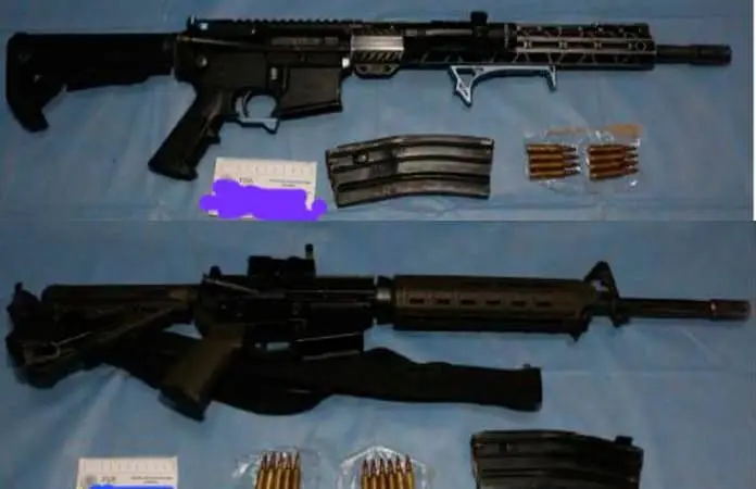 Al acercarse los elementos de seguridad, ambas personas descendieron del vehículo e intentaron huir, pero los policías les dieron alcance y al realizarles una revisión, les aseguraron dos armas de fuego largas, ocho cargadores y 19 cartuchos útiles.
