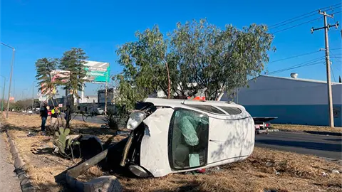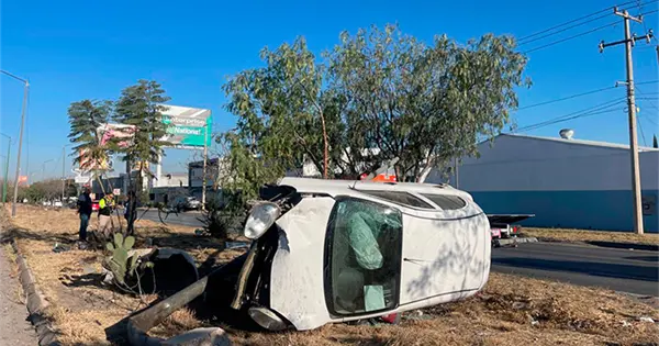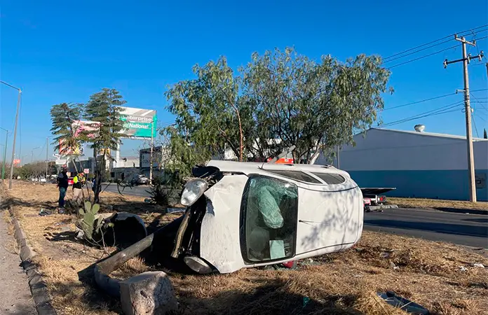 De milagro el conductor de un automóvil salió ileso luego de derribar un poste de alumbrado público y finalmente volcar cuando se desplazaba sobre la carretera a México a la altura de la colonia Prados primera sección.