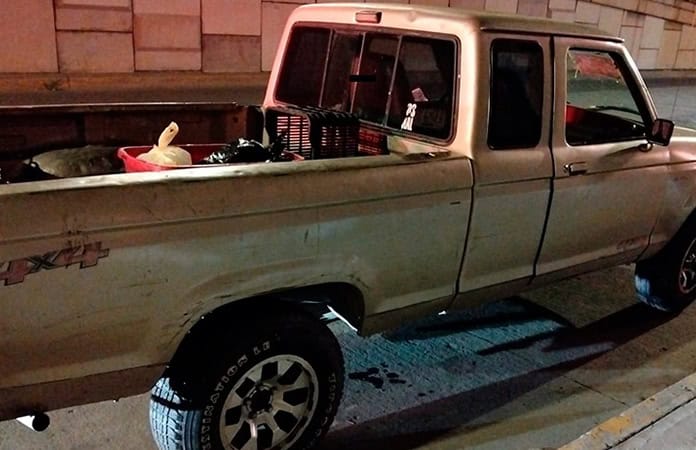 De acuerdo al reporte de los hechos, los oficiales municipales patrullaban sobre la lateral de la avenida Salvador Nava Martínez, al llegar a la calle Fray José de Arlegui de la colonia Viveros, notaron en circulación una camioneta tipo pick up color beige, la cual no portaba placas de circulación.