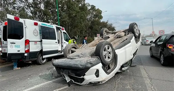Fue en el kilómetro 251, en donde la conductora perdió el control del volante hacia su izquierda, chocando de esta forma contra un árbol y un poste metálico de alumbrado público ubicados en el camellón central, para luego volcar y finalmente quedar con las llantas hacia arriban obstruyendo parcialmente el carril central.