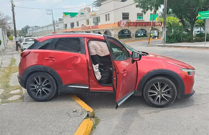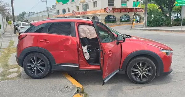 Al intentar cruzar, impactó una camioneta Mazda color guinda que era manejada por un adulto mayor, quien transitaba por Vicente C. Salazar en sentido de la Alameda hacia la colonia Altavista.