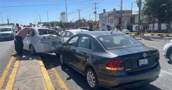 El reporte se recibió después de las 09:00 de la mañana, donde un WV tipo Ventó impactó por alcance a un Ford Fiesta y a un Kia, proyectándolo con otro más.