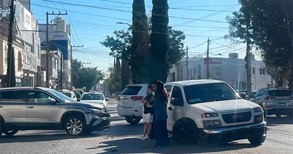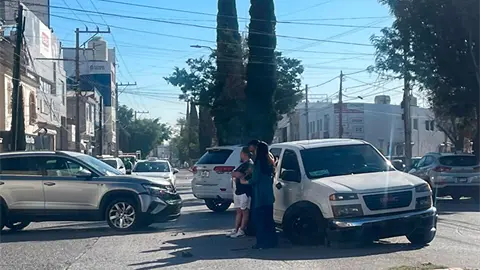 Dos camionetas protagonizaron un accidente vial cuando circulaban por la avenida Santos Degollado, por suerte no hubo lesionados y sólo se registraron daños materiales.