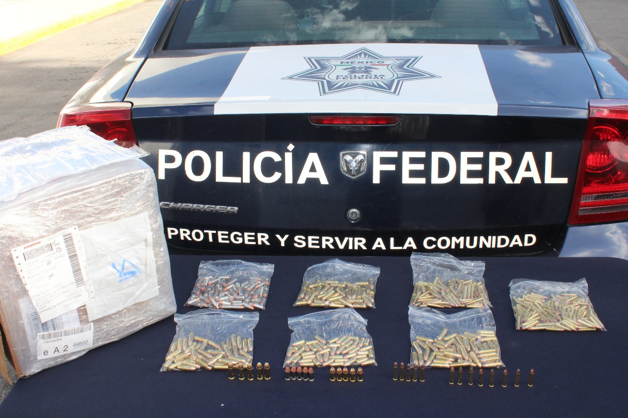 Dos cargadores y 550 cartuchos para armas de fuego, además de pipas con marihuana, fueron decomisados en tres acciones diferentes por elementos de la Policía Federal dentro de una paquetería del Aeropuerto Internacional de San Luis Potosí.