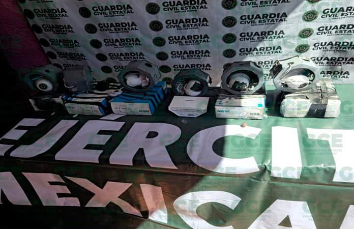 MOCTEZUMA.- Elementos de la Guardia Civil Estatal y del Ejército mexicano, desmantelaron una red de vigilancia utilizada por la delincuencia en este municipio, que utilizaban para monitorear los movimientos policiales.