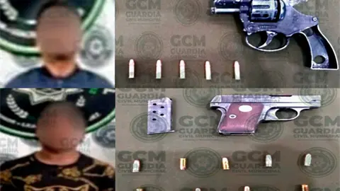 Como resultado de las labores preventivas enfocadas a combatir la incidencia delictiva, policías de la Guardia Civil de Soledad detuvieron a dos hombres por portación de arma de fuego, acciones que se llevaron a cabo en las colonias La Virgen y El Zapote.