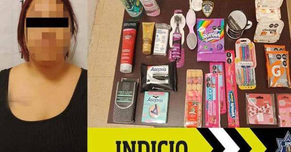 Al arribar al lugar, personal del comercio informó que la señalada fue detectada en diversos pasillos del lugar aparentemente guardando cosas en una bolsa de mano, posteriormente pasó por la línea de auto cobro, y finalmente al salir del lugar, se le encontró una bolsa blanca de polietileno en la cual había 24 productos, tanto de comida como de higiene personal, que no pagó.