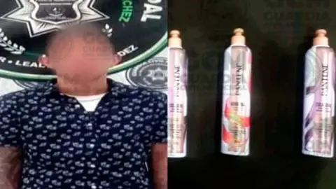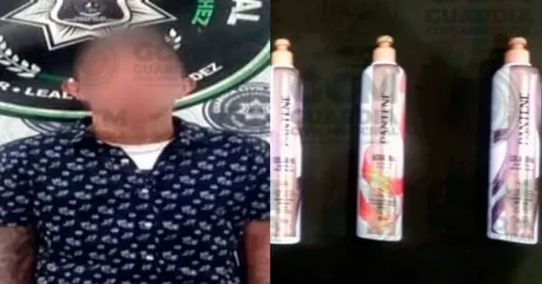 Después de entrevistar al sujeto, éste se identificó como Santiago “N” de 29 años, a quien se le encontraron cinco botellas de crema para peinar. De inmediato se le hizo saber que sería detenido por presunto robo a comercio.
